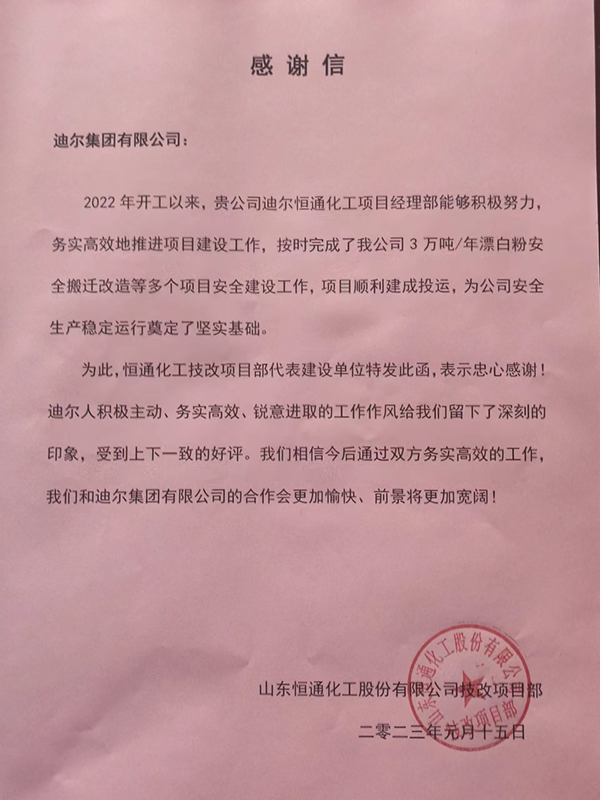 上一篇:山東華陽迪爾硝酸裝置項目喜獲業(yè)主表揚(yáng)信
