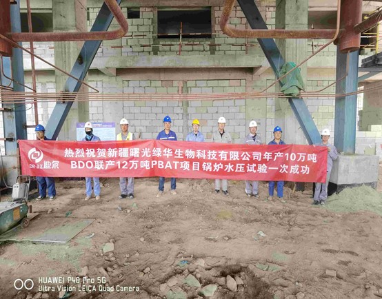 4月23日,由東華工程科技股份有限公司總承包的新疆曙光綠華生物科技有限公司年產(chǎn)10萬(wàn)噸BDO 聯(lián)產(chǎn)12萬(wàn)噸PBAT項(xiàng)目,6810工段鍋爐房裝置1#循環(huán)硫化床鍋爐水壓試驗(yàn)取得圓滿成功,為下一步鍋爐保溫、筑爐工作的開展創(chuàng)造了條件,也為鍋爐附屬管道施工以及后續(xù)吹管工作奠定了良好的基礎(chǔ)。