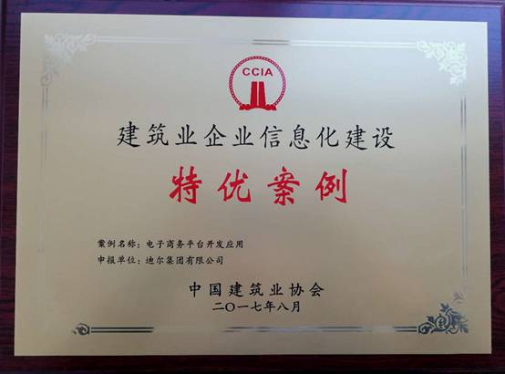 我公司申報的《電子商務平臺開發(fā)應用》在第三屆建筑業(yè)企業(yè)信息化建設案例征集活動中被評為“建筑業(yè)企業(yè)信息化建設特優(yōu)案例”。