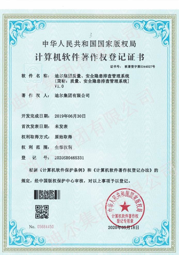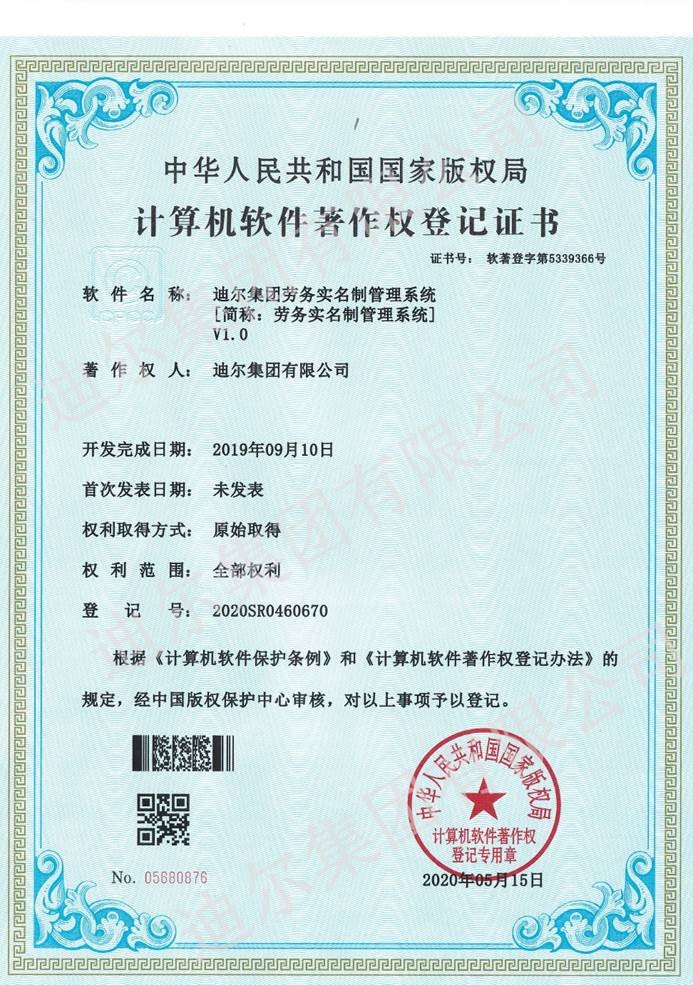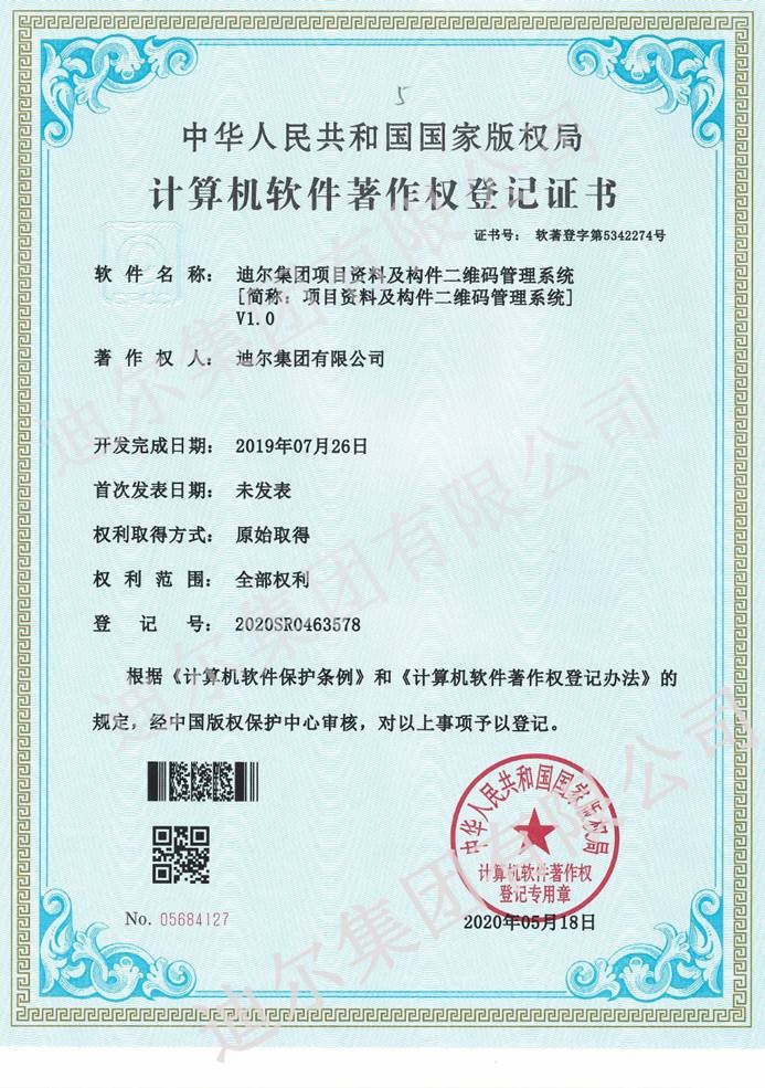 2020年5月23日,公司自主設計開發(fā)并實施應用的五個信息化管理系統(tǒng):綜合數(shù)據(jù)分析平臺、勞務實名制管理系統(tǒng)、質量安全隱患排查管理系統(tǒng)、電子商務物資集采平臺、項目資料及構件二維碼管理系統(tǒng),均獲得國家版權局計算機軟件著作權。