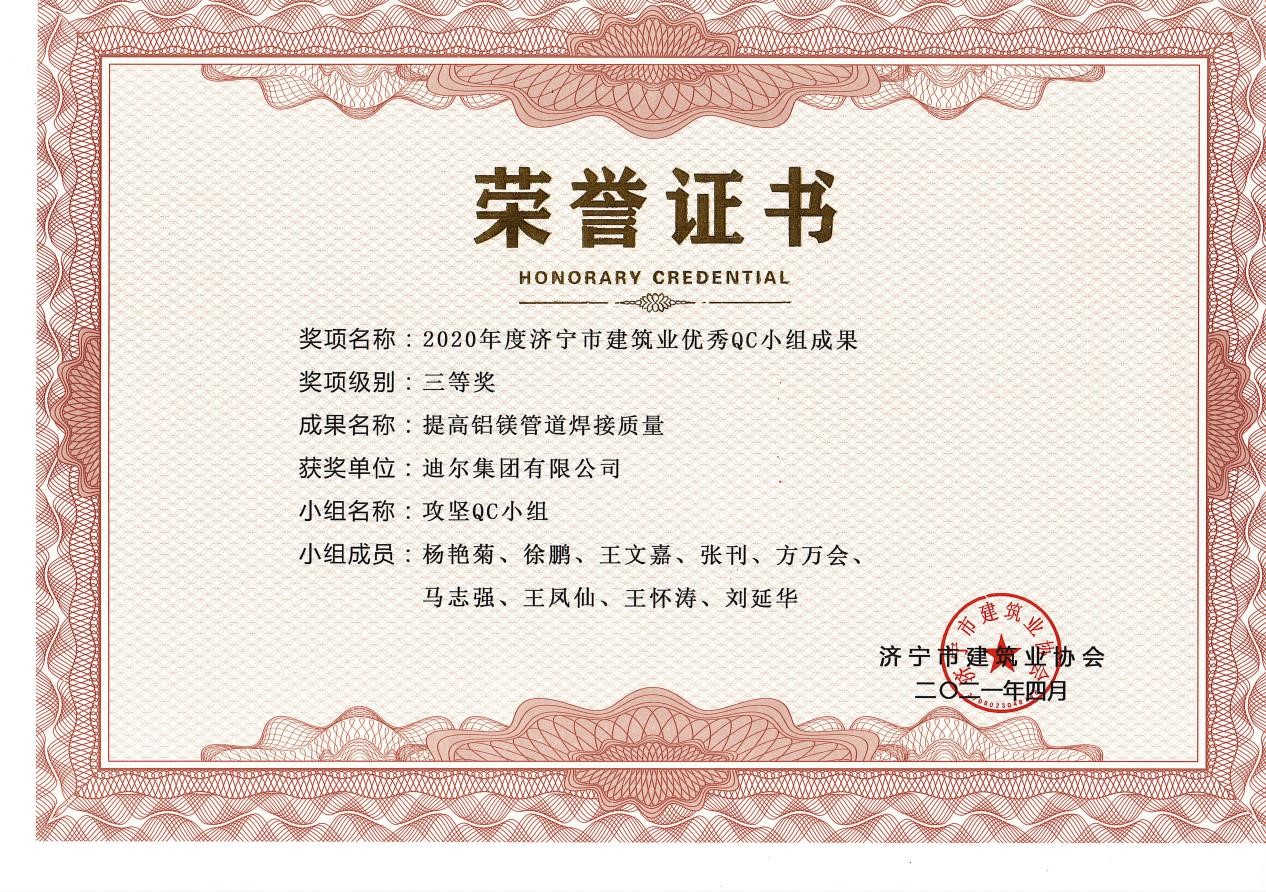 下一篇:2020年公司榮獲濟(jì)寧市建筑業(yè)優(yōu)秀QC小組活動(dòng)成果三等獎(jiǎng)