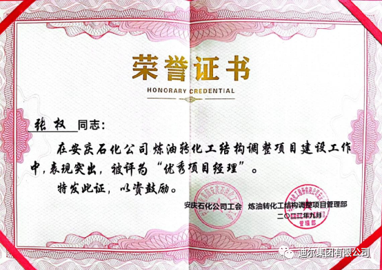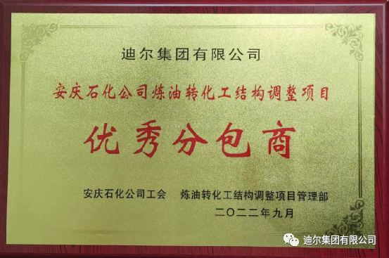 近日,在第一公司承建的中石化安慶高新區(qū)石化熱電聯(lián)產(chǎn)擴(kuò)建項(xiàng)目業(yè)主階段性總結(jié)表彰大會(huì)上,迪爾集團(tuán)有限公司榮獲“優(yōu)秀分包商”榮譽(yù)稱(chēng)號(hào);項(xiàng)目經(jīng)理張權(quán)榮獲“優(yōu)秀項(xiàng)目經(jīng)理”榮譽(yù)稱(chēng)號(hào)。