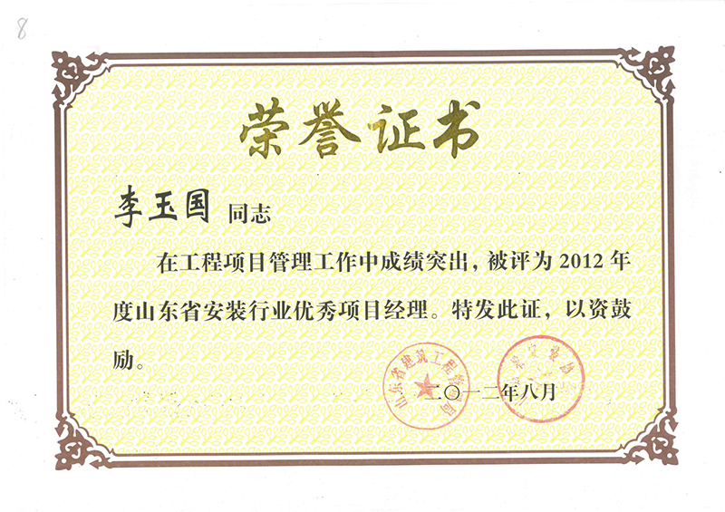 Certificate of honor