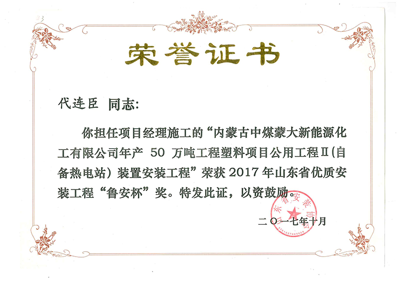 Certificate of honor