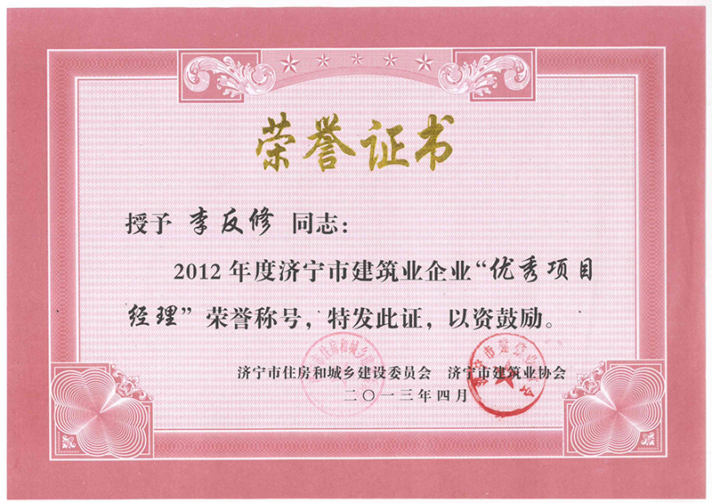 Certificate of honor
