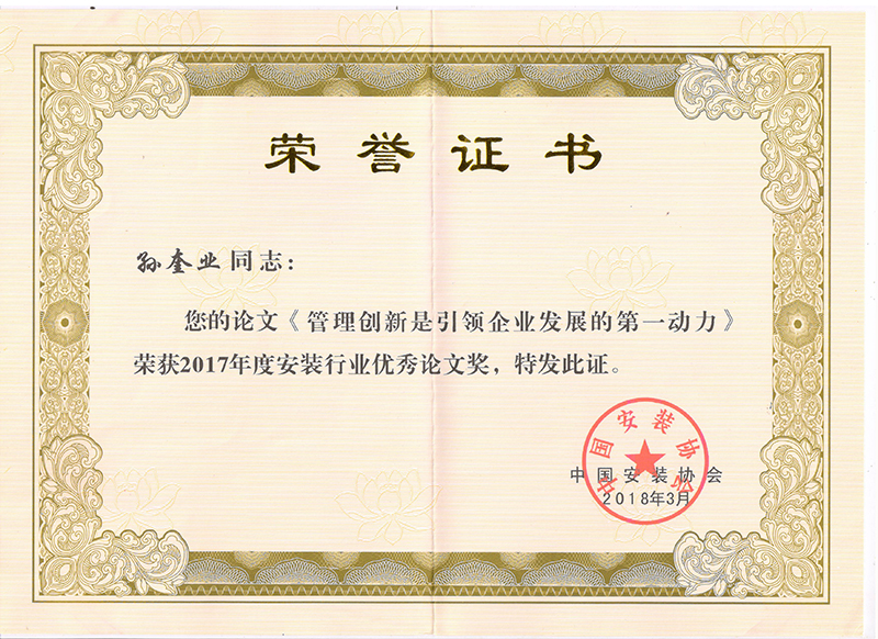 Certificate of honor